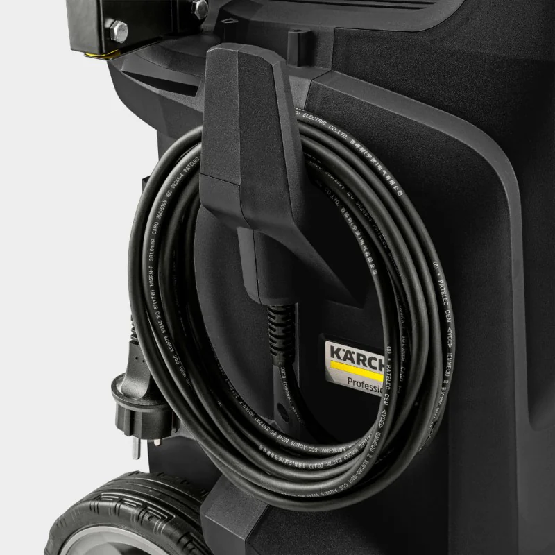 Automatyczny bęben na wąż wysokociśnieniowy – ułatwia przechowywanie i szybkie przygotowanie sprzętu do pracy.